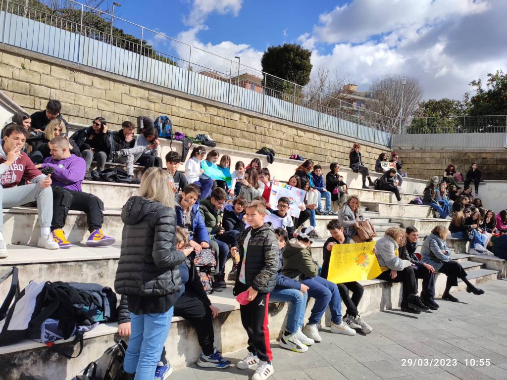 Alunni e docenti di tante scuole, dai piccoli della primaria ai grandi dei licei, alla presenza dell’Assessore all’Istruzione Maura Striano e di gran parte della Giunta della V Municipalità guidata dalla Presidente Cozzolino, di moltissimi genitori e di tante persone che si sono fermate ad ascoltare, hanno fatto sentire la loro voce a favore della Pace, contro ogni violenza, esprimendosi con la musica, la poesia, il disegno e liberi messaggi di pace.