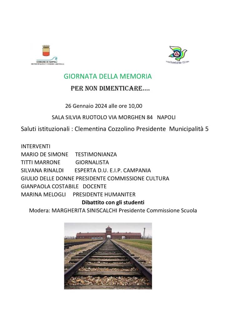 In occasione della Giornata della Memoria 2024, la sezione Campania di EIP Italia promuove un evento in collaborazione con la Municipalità 5 Vomero – Arenella del Comune di Napoli.