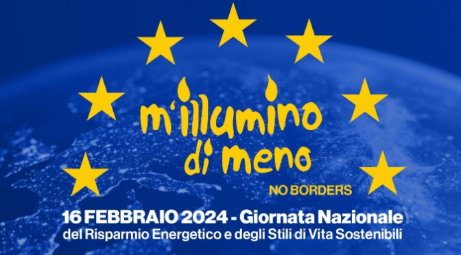 La XX edizione di M’illumino di Meno si svolgerà il 16 febbraio 2024 e persegue anche l’obiettivo di cercare alleanze internazionali nell’impegno per l’ambiente e il Ministero dell’Istruzione e del Merito ha rinnovato l’invito “ad organizzare in occasione della Giornata Nazionale del 16 febbraio una o più iniziative legate ai temi del risparmio energetico e della sostenibilità, ma anche a coinvolgere nell’adesione istituti stranieri con cui sono in contatto tramite progetti internazionali”.