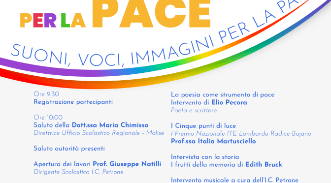 Nella giornata di lunedì 25 marzo 2024, presso l’Istituto comprensivo “Igino Petrone”, in via Alfieri 80 a Campobasso, si svolgerà l’evento conclusivo della manifestazione con la partecipazione della Direttrice dell’USR Molise, Maria Concetta Chimisso, della Presidente Nazionale E.I.P., Prof.ssa Anna Paola Tantucci, il poeta Elio Pecora e l’intervento straordinario di Edith Bruck.