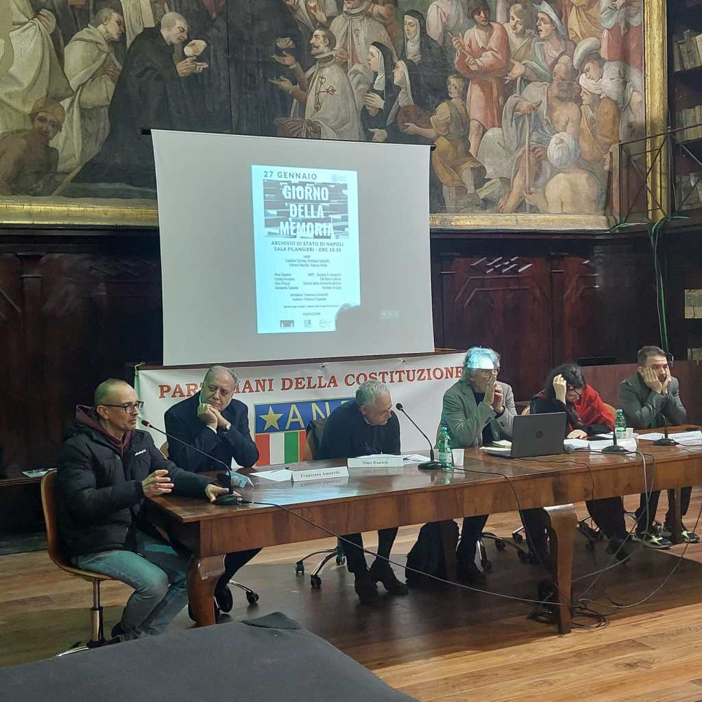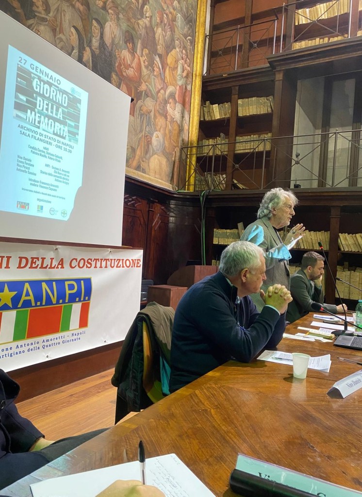 Presso la prestigiosa Sala Filangieri dell’Archivio di Stato si è svolta la manifestazione che ha celebrato il Giorno della Memoria. A Ottant’anni dalla Liberazione, non poteva esserci luogo più adatto ad accoglierla. La Storia è in quello scrigno, e ci parla, se siamo attenti e disposti ad ascoltarla. Ieri ci abbiamo provato e, credo, ci siamo anche riusciti, grazie all’impegno congiunto di chi, credendoci, l’ha voluta realizzare, a cominciare dal Direttore dell’Archivio, Candida Carrino. La folta partecipazione degli studenti e dei docenti di alcune scuole del territorio si deve, infatti, alla passione di chi quelle scuole le conosce, come la Presidente della Commissione Scuola della Municipalità 2, Valeria Vitale, che ha portato i saluti del Presidente Roberto Marino che ha patrocinato l’iniziativa; e alla mobilitazione delle realtà associative che hanno fatto della cura della memoria e della difesa dei valori di libertà e di dignità degli esseri umani la loro missione: la Sezione Anpi-Napoli Centro “Antonio Amoretti”, le Associazioni “AntinooArcigay” e “Chi Rom e chi no”, e il gruppo “Aperitivo Resistente”. Nel portare il loro saluto, la Dirigente Scolastica Stefania Colicelli (Liceo “V. Emanuele-Garibaldi”) e i docenti Elena Barbato (delegata dalla Dirigente Palmira Masillo dell’I.S. “Alfonso Casanova”) e Lorenzo De Stefano e Annalisa Saccone (I.S.I.S. “Francesco De Sanctis”) hanno rimarcato l’importanza dell’’evento, e la necessità di replicarlo, coinvolgendo un numero crescente di ragazze e ragazzi. Ad essi, in particolare, si sono rivolti anche i relatori che sono intervenuti: da Nino Daniele allo storico Nico Pirozzi, da Emma Ferulano ad Antonello Sannino presentati dal moderatore Vincenzo Capuano. Nel denunciare la gravità del momento storico che stiamo vivendo, ciascuno di loro ha rivolto un invito a non abbassare la guardia, a essere vigili e combattivi, a lottare contro forze potenti che intendono mettere le loro mani sulle nostre vite e sulle nostre libertà. Ad arricchire la mattinata due preziosi fuori programma: la proiezione del video della commovente testimonianza di un sopravvissuto all’Olocausto, Sami Modiano, e la lettura di significativi brani tratti da opere letterarie e filosofiche da parte di alcuni studenti del De Sanctis. Momenti intensi, che ci indicano la strada da percorrere, con più determinazione di prima. E’ quello che ci siamo già impegnati a fare lo scorso 22 ottobre lanciando il progetto didattico ”Le Quattro Giornate insegnano” associato al premio “Antonio Amoretti del Concorso Nazionale E.I.P. Italia. Progetto che vede il pieno il coinvolgimento di associazioni e giovani. Il prossimo appuntamento è il 25 aprile. Non mancheremo.
