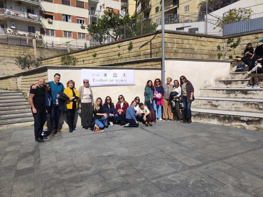 Anche quest’anno, quindi, per iniziativa di EIP Campania, non sono mancati i Tamburi per la Pace, evento patrocinato dal Comune di Napoli, e coordinato dalla prof.ssa Elvira D’Angelo, che ne ha curato la pubblicità e il servizi audio e video. La Municipalità 5 Arenella-Vomero e l’Assessorato al Verde della Città hanno collaborato all’iniziativa, che si è svolta presso il parco Buglione. Le scuole partecipanti sono state il Liceo “Mazzini”, l’ISIS “Galiani-Da Vinci”, l’IC “Pavese-Nazareth” e l’IC “D’Ovidio- Nicolardi”, che, alla presenza della Presidente della Municipalità V Clementina Cozzolino, della Presidente della Commissione Scuola Margherita Siniscalchi, e di numerosi genitori, si sono esibite in canti, balli, declamazioni di poesie, esposizioni di lavori grafici di accurata fattura, esibizioni musicali con tamburi originali offerti dalla classe di Percussioni della Scuola “D’Ovidio-Nicolardi”, guidati dall’ottimo prof. Stipa.