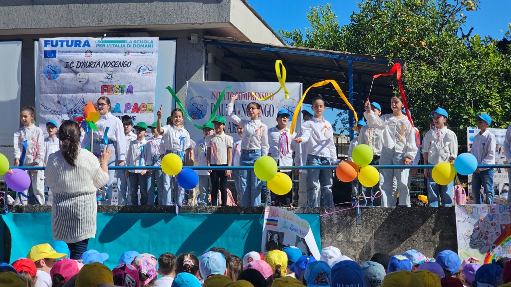 Il 30 maggio 2025, l’Istituto Comprensivo “D’auria-Nosengo” di Arzano (NA) ha celebrato la terza edizione della Festa della Pace. L’evento, che si è svolto presso il plesso “Nosengo” in via Ferrara, è stato organizzato dalla comunità educante dell’Istituto con il patrocinio dell’Associazione E.I.P. Italia Scuola Strumento di Pace ETS e in collaborazione con il Movimento Internazionale per la Pace e la Salvaguardia del Creato III Millennio.