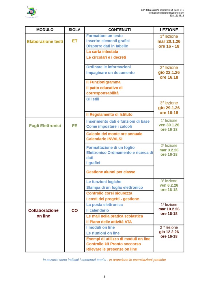 Per alcuni argomenti il riferimento teorico è dato dal Syllabus Eipass, documento basato sul framework europeo delle competenze digitali DigComp 2.2.