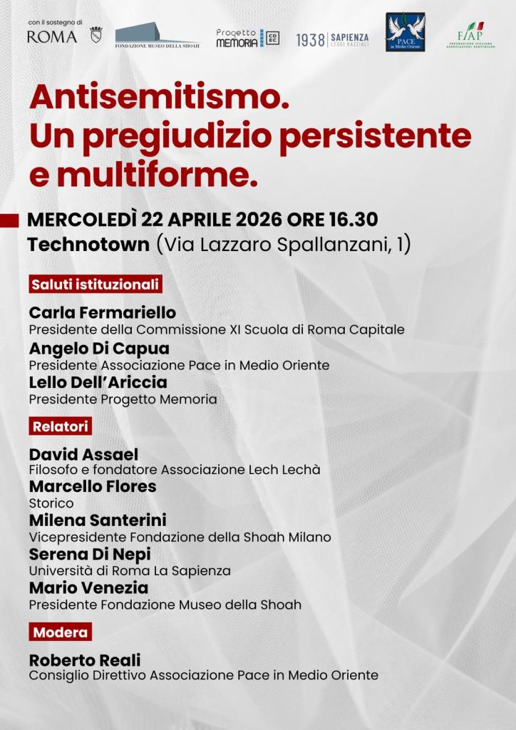 L’iniziativa, realizzata con il sostegno di Roma Capitale e di numerose istituzioni culturali e accademiche (tra cui Sapienza, FIAP e 1938 Leggi Razziali), rappresenta un’occasione fondamentale per riflettere sulle dinamiche dell’odio antiebraico e sulle strategie per disinnescarlo.