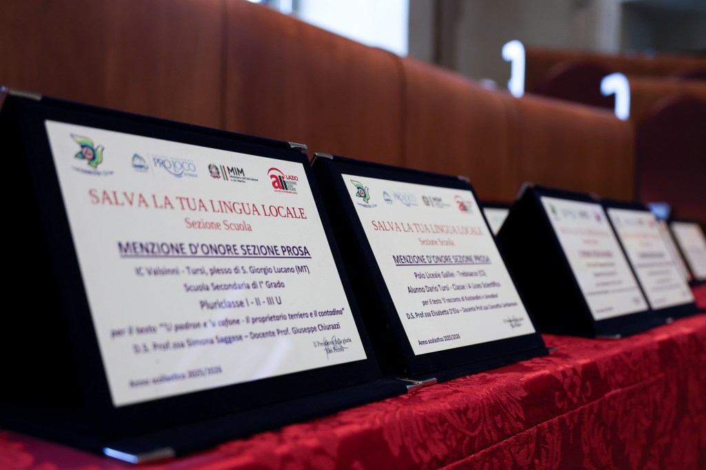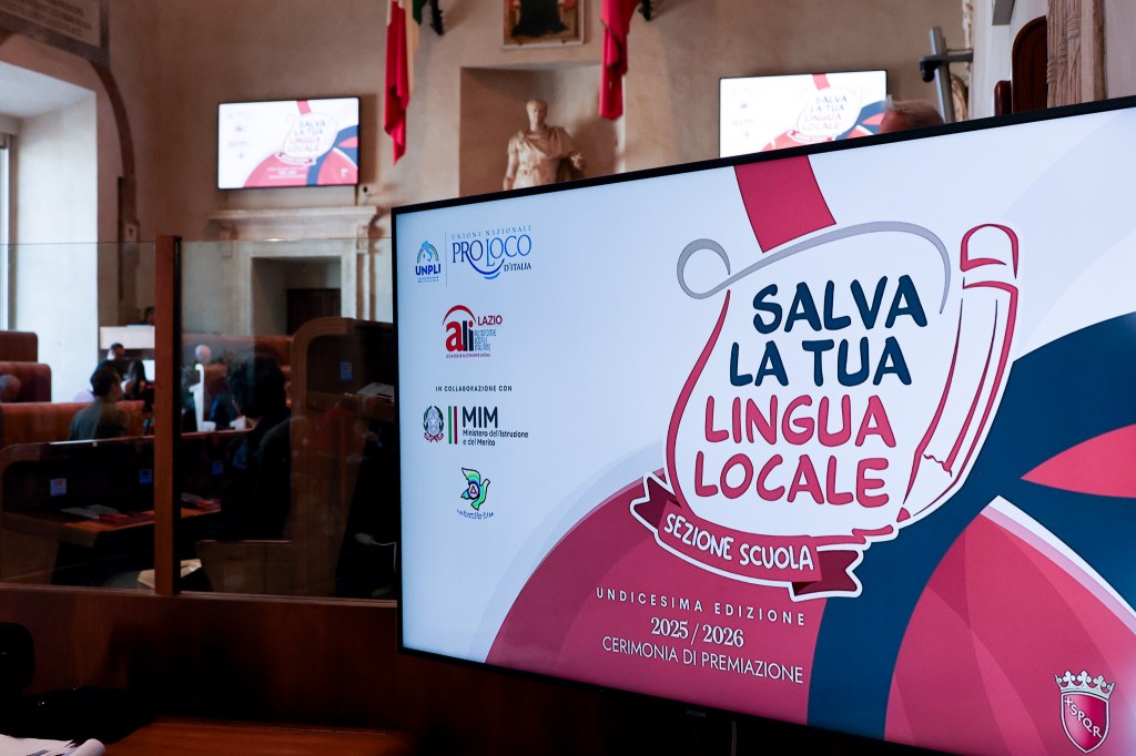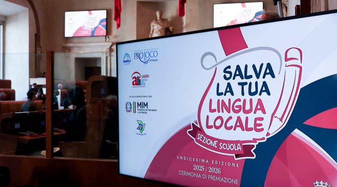 Lunedì 27 aprile la magnifica cornice dell’Aula “Giulio Cesare” in Campidoglio ha ospitato la Cerimonia di premiazione dell’undicesima edizione del concorso nazionale “Salva la tua lingua locale – Sezione Scuola”.