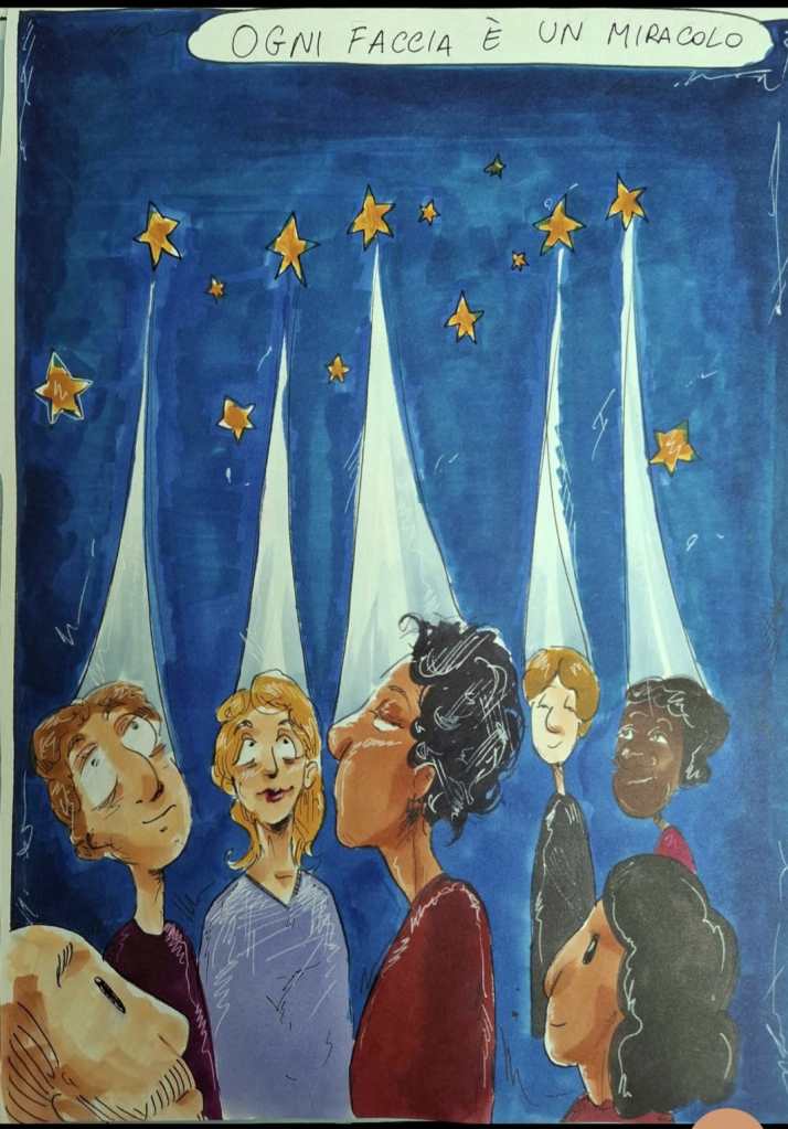 Elena, che concilia gli studi liceali con la frequenza del primo anno del triennio accademico al Conservatorio di Santa Cecilia, ha realizzato le 15 tavole che compongono l’opera, arrivando a lavorare anche di notte pur di non sottrarre tempo allo studio. L’obiettivo del fumetto è parlare ai più giovani con un linguaggio all’apparenza semplice ma profondo, supportato da colori vivaci e tratti espressivi che rendono la narrazione immediata e intensa. Come ha raccontato l’autrice stessa durante l’evento, il lavoro le ha permesso di rappresentare un messaggio cruciale in modo diretto, rimanendo molto colpita dalla frase del testo: “il razzista soffre di un complesso di inferiorità o di superiorità”. La copertina, che corrisponde all’ultima illustrazione del racconto, è altamente simbolica: raffigura fasci di luce provenienti dalle stelle che confluiscono sulla testa di ogni ragazzo, a dimostrazione che la diversità non è qualcosa da temere, ma una ricchezza da scoprire.