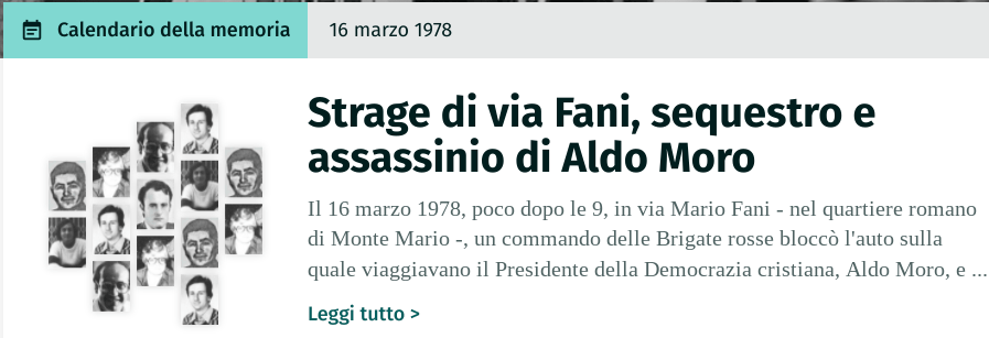 Fatalmente, oggi, 16 marzo, viene riportato il ricordo della strage di via Fani, con il sequestro e il successivo assassinio di Aldo Moro.
