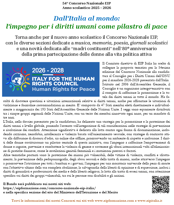 In un tempo in cui essere influencer sembra voler dire solo apparire, Eugenia Bruzzi Tantucci ci mostra che si può influenzare davvero, lasciando un segno con le idee, l’impegno e il coraggio. La sua vita e il suo lavoro ci parlano ancora oggi di giustizia sociale, rispetto per l’ambiente, memoria storica e diritti umani. Con questa sezione vogliamo invitare gli studenti a raccontare, con linguaggi moderni e creativi, come una figura come Eugenia possa essere un’influencer d’esempio per le nuove generazioni: non per creare tendenze superficiali, ma per diffondere pensiero critico, consapevolezza e voglia di cambiare il mondo. Lasciati ispirare da lei per riflettere su temi fondamentali come la pace, l’uguaglianza, la sostenibilità e la cittadinanza attiva, in linea con gli Obiettivi dell’Agenda ONU 2030.